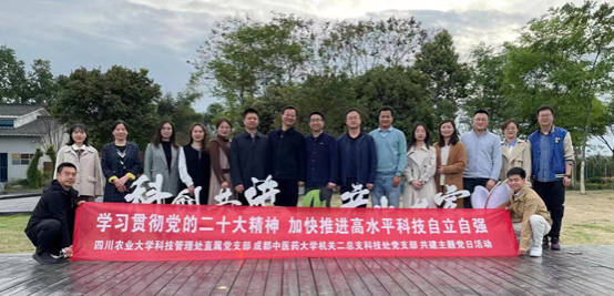 为深入学习贯彻党的二十大报告精神和习近平总书记来川视察重要指示精神,强化推进高水平科技自立自强、服务高质量发展的意识。4月3日下午,科技管理处直属党支部和成都中医药大学机关二总支科技处党支部共同开展了“学习贯彻党的二十大精神 加快推进高水平科技自立自强”主题党日活动。科技管理处直属党支部书记、处长曾维忠,副处长刘杨,副处长杜俊波以及双方支部党员代表等20余人参加活动。